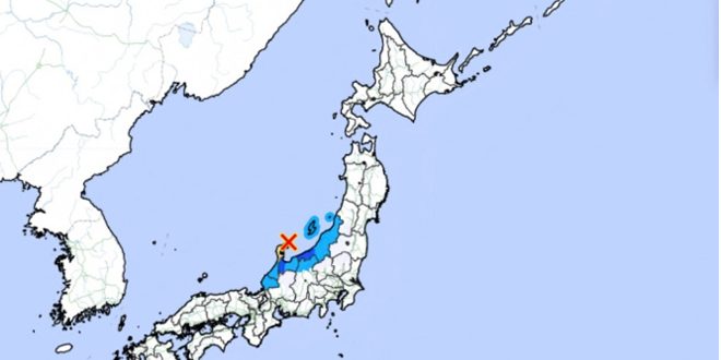 ضربت هزة أرضية بقوة 5.3 درجات على مقياس ريختر اليوم قبالة الساحل الغربي لجزيرة هونشو اليابانية، دون أنباء عن إصابات .