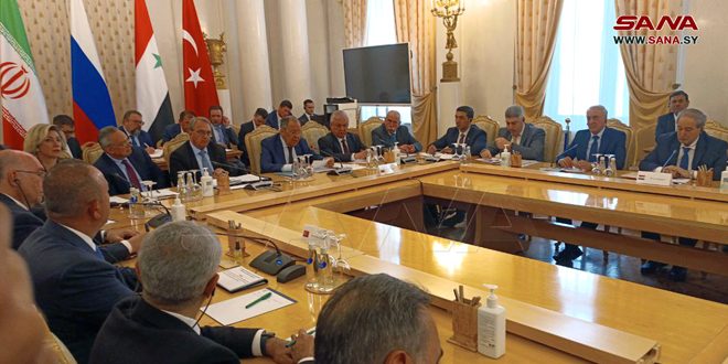 وأكد المقداد في ختام كلمته أن كل الأفكار والنقاط السابقة، وعلى رأسها موضوع انسحاب القوات التركية، تتسق مع القانون الدولي وميثاق الأمم المتحدة ومع البيانات الختامية الصادرة عن اجتماعات أستانا التي جميعنا جزء منها، وهي جوانب عملية ومتطلبات لا بدّ منها لتصحيح وتحسين العلاقات بين سورية وتركيا وتلبية مصالحهما المشتركة.
