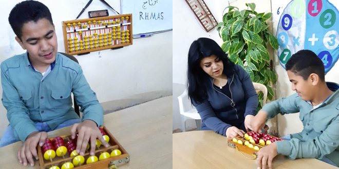 وبينت أنها قامت بتدريبه مع الطلاب السليمين صحياً، فأثبت تفوقه بينهم وقدرته على العمل والحساب الذهني بشكل طبيعي، موضحة أن التدريب يتم باستخدام وسائل بصرية وحسية منها ما يدعى “المعداد” الذي يتكون من خرز لكل واحدة قيمة عددية.