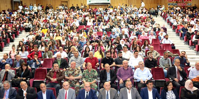 احتفل على المدرج الكبير لكلية الآداب والعلوم الإنسانية في جامعة البعث بحمص بتكريم الطلاب الأوائل حاملي شهادة الباسل للتفوق الدراسي للعام 2021- 2022 من كليات الهندسة المدنية والمعمارية والتربية الموسيقية والسياحة، والبالغ عددهم 58 طالباً وطالبة.