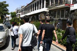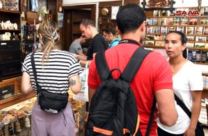زارت مجموعة سياحية تضم 14 سائحاً من جنسيات (بريطانية وكندية وألمانية وفرنسية وإيرلندية وأسترالية وبرازيلية وهولندية وفنلندية) مدينة دمشق اليوم، حيث اطلعوا على المعالم الأثرية والدينية وجالوا في الأسواق القديمة لشراء التحف والتذكارات المشغولة يدوياً، إضافة إلى اقتناء سلاسل حملت أسماءهم باللغة العربية الفصحى.