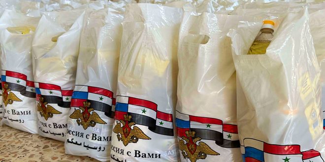 وتضمنت المساعدات الروسية مواد غذائية متنوعة، شملت الدقيق والرز والشاي والزيت النباتي والحليب المكثف والسكر.