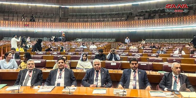وعلى هامش فعاليات المؤتمر التقى الوفد البرلماني السوري مع رئيس الجمعية الوطنية الباكستانية راجا برويز أشرف.