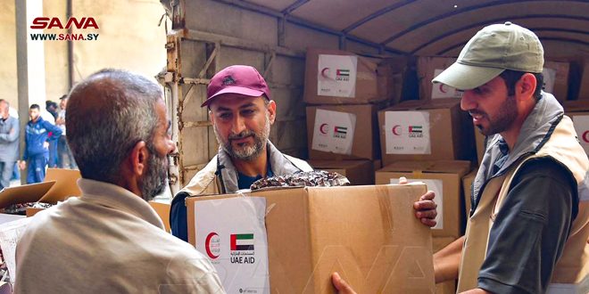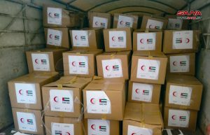 وزع الهلال الأحمر الإماراتي بالتعاون مع الهلال الأحمر العربي السوري ضمن مبادرة (لن ننساكم) 450 سلة غذائية على عمال النظافة في اللاذقية.