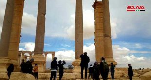 زارت مجموعة سياحية أجنبية من دول أوروبية عدة مدينة تدمر التاريخية اليوم، واطلعت على أبرز معالمها الأثرية ووثقت الدمار والخراب الذي لحق بالأوابد المعمارية التاريخية والمنشآت السياحية بالمدينة جراء اعتداءات تنظيم “داعش” الإرهابي قبل اندحاره من المنطقة بفضل بطولات الجيش العربي السوري.