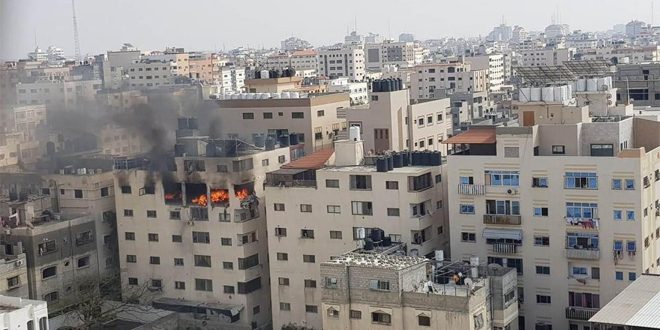 وذكرت وسائل إعلام فلسطينية أن طيران الاحتلال استهدف بالصواريخ مبنى سكنياً في حي النصر غرب مدينة غزة، ما أدى إلى استشهاد فلسطينيين اثنين وإصابة خمسة آخرين، إضافة إلى إلحاق أضرار جسيمة بالمبنى والأبنية المجاورة.