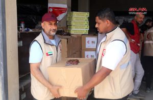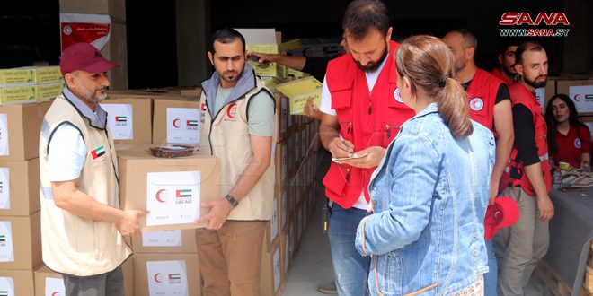 وأوضح ممثل الهلال الأحمر الإماراتي سليمان العكبري في تصريح لمراسلة سانا أن مبادرة لن ننساكم التي تأتي ضمن عملية “الفارس الشهم 2” استهدفت توزيع سلات غذائية على أكثر من 600 طبيب وممرض، لافتاً إلى أن هذه المبادرة تأتي كمرحلة ثانية في إطار الجهود الإنسانية والإغاثية الإماراتية المتواصلة، بالتعاون مع الجهات المسؤولة والهلال الأحمر في سورية، مع العمل لتنفيذ فعاليات مماثلة في قطاعات أخرى.