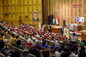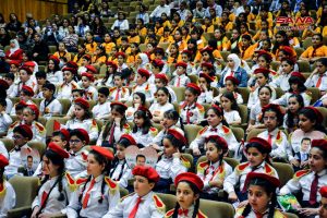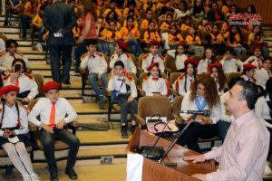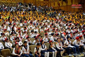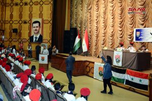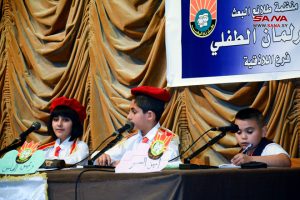حضرت مطالب أطفال اللاذقية والواقع الخدمي للمحافظة خلال افتتاح جلسات البرلمان الطفلي الذي أقامه فرع اللاذقية لمنظمة طلائع البعث في دار الأسد للثقافة اليوم.