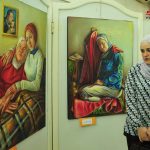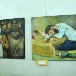 وشاركت الخريجة هالة فاخوري بثلاث لوحات جسدت من خلالها الفقد واللحظات الأخيرة مبينة أنها درست اللون المناسب لكل لوحة مع تعابير الوجه لتخاطب المتلقي وتحاوره وتؤثر به.