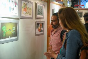 وتبارى المشاركون من سبعين دولة حول العالم في المعرض الذي افتتح اليوم في دار الأسد للثقافة والفنون في تصوير الأديب مينا من رؤى فنية مختلفة صورت مواضيع أساسية حددها القائمون على المسابقة.