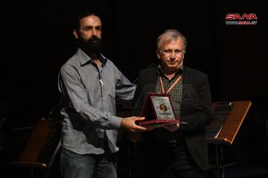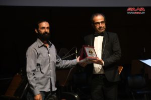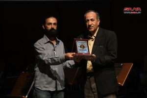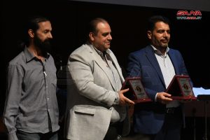 كما تم تكريم كل من رئيس اتحاد الكتاب العرب الدكتور محمد الحوراني ومدير عام دار الأسد للثقافة والفنون المايسترو أندريه معلولي بدرع الروائي الراحل حنا مينا، إضافة إلى لجنة تحكيم الأعمال المشاركة في المهرجان وهم الفنانون التشكيليون موفق مخول وحسن اسماعيل وبشرى الحكيم والناقد المسرحي جوان جان، إضافة لقائد الأوركسترا المايسترو نزيه أسعد، تلاها عرض فيلم قصير صامت بعنوان الحياكة.