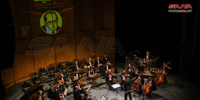 واستمر الحفل على وقع الأوركسترا التي قادها المايسترو نزيه أسعد لتقدم مقتطفات من شارات الأعمال الدرامية التي كتبها حنا مينة، إضافة إلى مقطوعات موسيقية من وحي الحدث، مروراً ببانوراما غنائية عن التراث السوري والبحري.