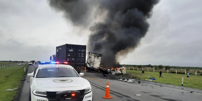 وذكرت وسائل إعلام محلية أن أكثر من 20 شخصاً ربما قتلوا في الحادث، وما نتج عنه من حريق وأن الضحايا ربما كانوا جميعا أفراداً من عائلة واحدة استأجرت الحافلة الصغيرة للتوجه إلى مدينة مونتيري الشمالية في فيراكروز.