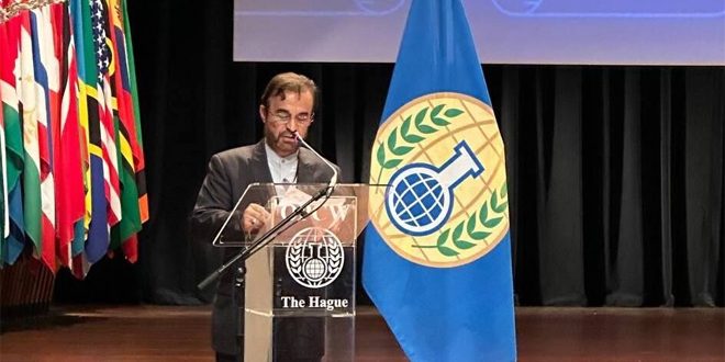 وخلال المؤتمر الدولي الذي عقد في جولته الخامسة في لاهاي اليوم حول (إعادة النظر في معاهدة الحد من الأسلحة الكيميائية)، قال نجفي: إن إيران تعتبر أن أي حظر يُفرض على الأعضاء المستقلين لهذه المنظمة من قبل الأعضاء الآخرين نقض للقانون الدولي ومعاهدة الحد من الأسلحة الكيميائية، مطالباً بإلغاء هذا الحظر غير القانوني واللاإنساني فوراً.