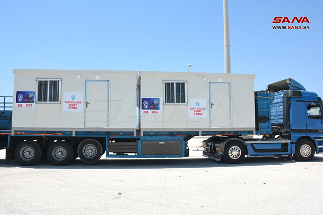 تسلمت الأمانة السورية للتنمية اليوم 10 غرف مسبقة الصنع “كرفانات” مقدمة من الشعب الأردني و”جمعية مسلمون حول العالم”، والتي سيتم وضعها تحت تصرف اللجنة الفرعية للإغاثة في محافظة اللاذقية وغرفة العمليات فيها, ضمن الجهود لدعم منكوبي الزلزال.