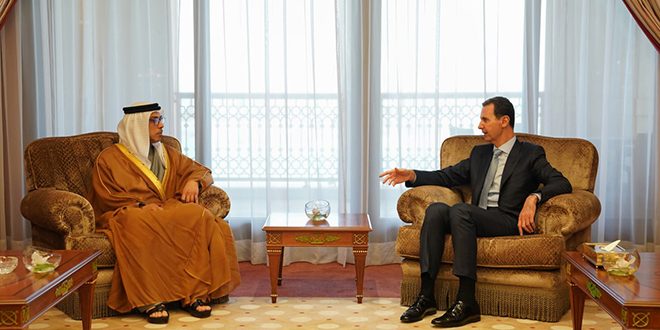 وبحث الرئيس الأسد مع الشيخ منصور بن زايد العلاقات الثنائية الوثيقة بين سورية والإمارات، وسبل تعزيز العمل العربي المشترك.