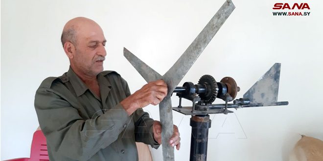 وذكر الباروكي خلال حديثه لمراسل سانا أن المروحة مصممة لتحويل طاقة الرياح لطاقتين، الأولى كهربائية لتشغيل مدخرة والثانية ميكانيكية للتدفئة، وذلك ضمن سرعات عالية ناتجة عن ضغوط بفعل دفع الهواء.