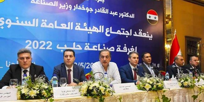 حضر الاجتماع محافظ حلب حسين دياب وحشد من الصناعيين.