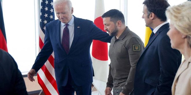 ونقلت رويترز عن بايدن قوله خلال لقائه الرئيس الأوكراني فلاديمير زيلينسكي على هامش قمة مجموعة السبع في مدينة هيروشيما اليابانية: إن الولايات المتحدة ستبذل كل ما بوسعها لتعزيز قدرات كييف الدفاعية في القتال ضد روسيا، مشيراً إلى أن المساعدات الجديدة ستتضمن ذخيرة ومدفعية ومركبات مدرعة.