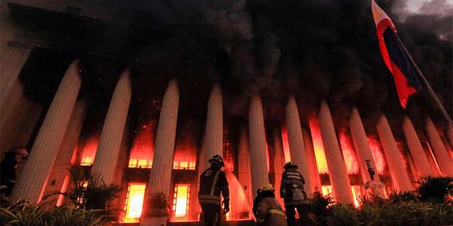 ونقلت وكالة الأنباء الصينية شينخوا عن مكتب الحماية من الحرائق قوله اليوم: إن “الحريق بدأ من الطابق السفلي في مبنى مكتب البريد المركزي الفلبيني المكون من أربعة طوابق بوقت متأخر مساء أمس، وأسفر عن إصابة أربعة أشخاص على الأقل، إضافة إلى تدمير المبنى”.