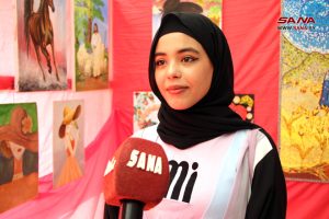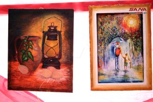 الطالبة راما العيسى لفتت إلى أهمية إطلاق معارض لأعمال الطلاب بشكل شهري لتحقيق الفائدة الأكبر، مشيرة إلى أنها تشارك بالمعرض من خلال 10 لوحات في مجالات الرسم باستخدام الألوان الزيتية والفحم وأقلام الرصاص “البورتريه” مع لوحة منظر طبيعي.