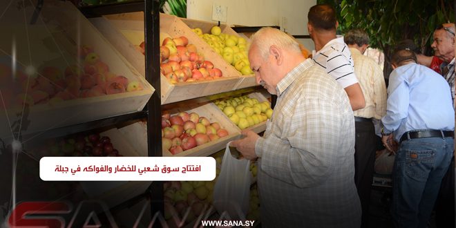 السورية للتجارة تفتتح سوقاً شعبياً للخضار والفواكه بمدينة جبلة