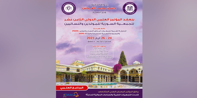 تنطلق غداً فعاليات المؤتمر العلمي الدولي الثامن عشر للجمعية السورية للمولدين والنسائيين بالتعاون مع الرابطة العربية لجمعيات أمراض النساء، والمجموعة العربية للخصوبة والوراثة، وذلك في فندق الداما روز بدمشق.