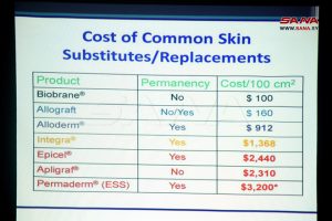 وقدم الوفد الذي يضم فريقاً متكاملاً من أطباء وتقنيين وإداريين ومختصين في المجال البيولوجي وزرع الخلايا، عرضاً حول كيفية بناء بنك جلد متعدد الأشكال، والخطوات الأساسية التي يجب اتباعها، والشروط الواجب توافرها وفق القوانين المعتمدة في البلاد، إضافة إلى التكلفة المادية الكبيرة التي يتطلبها.
