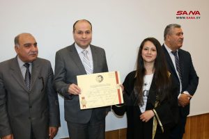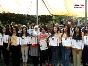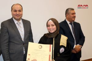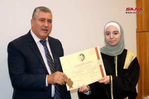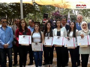 وفي السويداء، كرم فرع جامعة دمشق بالتعاون مع فرع الاتحاد الوطني لطلبة سورية اليوم 126 طالباً وطالبة من الأوائل الحائزين شهادة الباسل للتفوق في كليات الآداب والعلوم الإنسانية والتربية والهندسة الكهربائية والميكانيكية والعلوم التابعة له للعامين الدراسيين 2019- 2020 و 2020- 2021 في بلدة المزرعة.