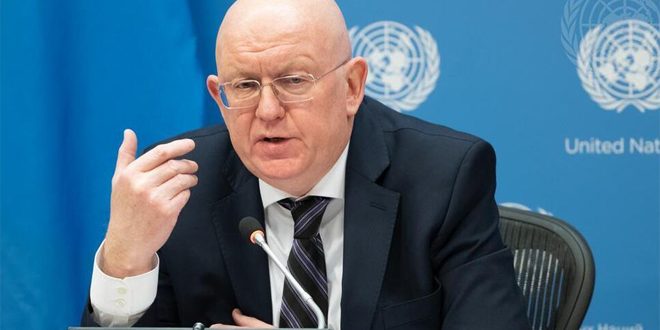 وأكد نيبينزيا أن قرار الإدارة الأمريكية السابقة الاعتراف بالقدس عاصمة لـ (إسرائيل) والسيادة الإسرائيلية على الجولان العربي السوري المحتل يتعارض مع التزام الولايات المتحدة بالقرارات الرئيسية لمجلس الأمن والجمعية العامة للأمم المتحدة.