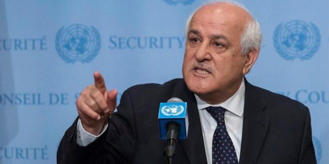 جدد مندوب فلسطين الدائم لدى الأمم المتحدة رياض منصور دعوته المجتمع الدولي للتحرك العاجل واتخاذ جميع الإجراءات الممكنة لوقف انتهاكات الاحتلال الإسرائيلي الجسيمة لحقوق الإنسان وجرائم الحرب والجرائم ضد الإنسانية التي يرتكبها دون عقاب في النكبة المستمرة ضد الشعب الفلسطيني.