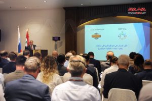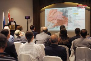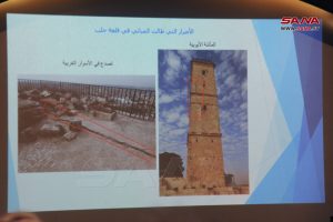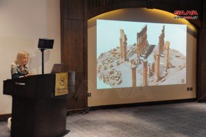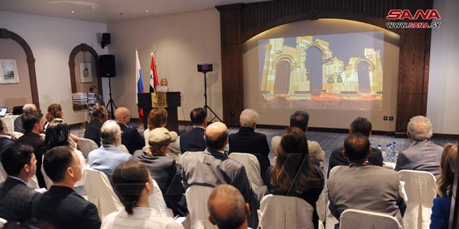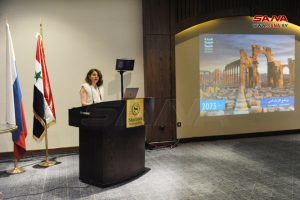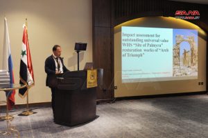 وقدمت مديرة المشروع من الجانب الروسي ناتاليا سولوفيا عرضاً تفصيلياً لمشروع ترميم قوس النصر في تدمر، أما تقييم أثر الزلزال على القيمة العالية المميزة للموقع الأثري العالمي فقدمها الخبير الروسي اليكسي ميخايلوف بعنوان “المواقع الأثرية في تدمر لحظة إعادة ترميم قوس النصر”.