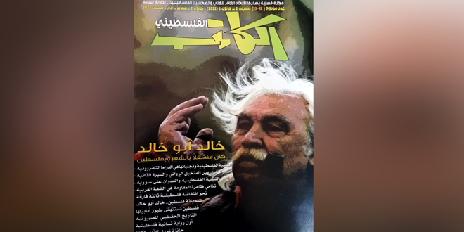 صدر العدد الجديد من مجلة الكاتب الفلسطيني عن الأمانة العامة للاتحاد والكتاب والصحفيين الفلسطينيين، وتضمن نصوصاً أدبية وقراءات نقدية وفكرية وبحثية لأدباء فلسطينيين وسوريين وعرب، تهدف إلى مواجهة التطبيع ومقاومة الفكر الصهيوني المحتل والتمسك بفلسطين وحق العودة إليها.