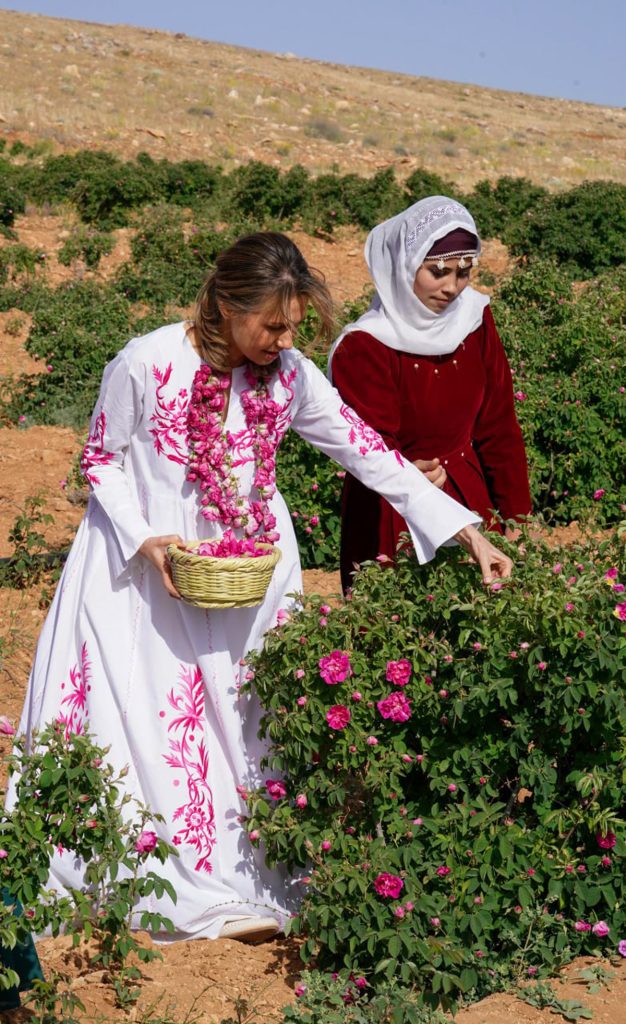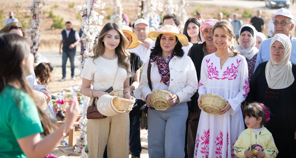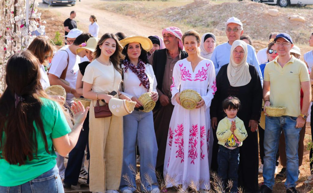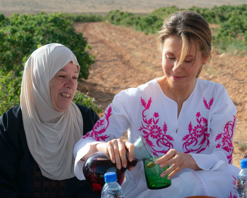 السيدة الأولى أسماء الأسد تشارك أهالي قرية المراح قطاف وردتهم الشامية