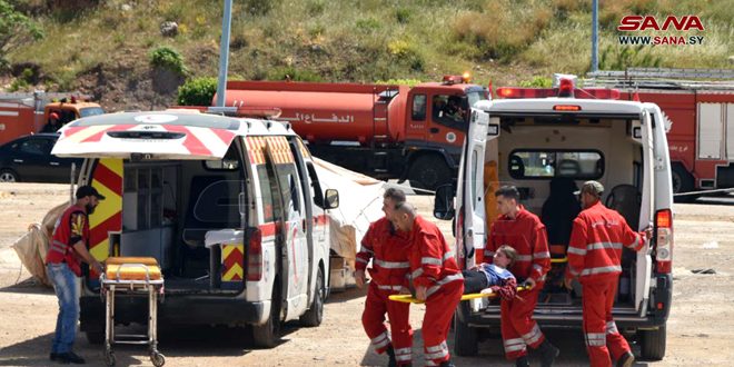 العميد الركن منذر الإبراهيم مدير الدفاع المدني بطرطوس قدم شرحاً توضيحياً لخطة البيان بمراحله كافة منذ لحظة الإبلاغ عن الهجوم المفترض وتوزيع المهام بالتوازي مع القيام بعملية التنفيذ من إخلاء المكان وإطفاء الحرائق الناجمة عن الهجوم مع إسعاف المصابين.