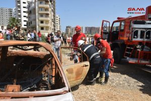 العقيد سمير شما قائد فوج الإطفاء بالمحافظة أشار إلى أنه من خلال البيان العملي “يتم التعامل مع حالات الحرائق والإسعاف وإخلاء المكان وإنقاذ المصابين، وغير ذلك من أعمال الدفاع المدني بحسب كل حالة إلى حين إتمام المهام الموكلة للعناصر المعنية وإعادة الوضع الطبيعي للمنشأة كما كانت”.