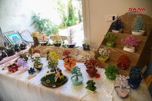 منتجات متنوعة من الأعمال اليدوية يشارك بها أكثر من 15 فناناً وحرفياً من مختلف الأعمار في معرض “وتبقى سورية مهد الفنون” الذي تقيمه مجموعة نون للأعمال الفنية اليدوية بالتعاون مع مؤسسة وثيقة وطن.