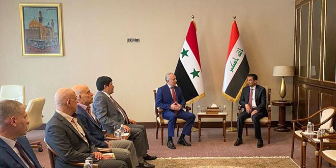 وأكد الوزير خزيم أهمية دعم كل خطوة تعزز العمل العربي المشترك، وتنعكس بالخير والنماء لما فيه مصلحة البلدين، معرباً عن الشكر والتقدير لكل المساهمات والجهود الإنسانية العراقية في تقديم المساعدات وأعمال الإغاثة للتخفيف من تداعيات كارثة الزلزال المدمر الذي ضرب سورية في شباط الماضي.