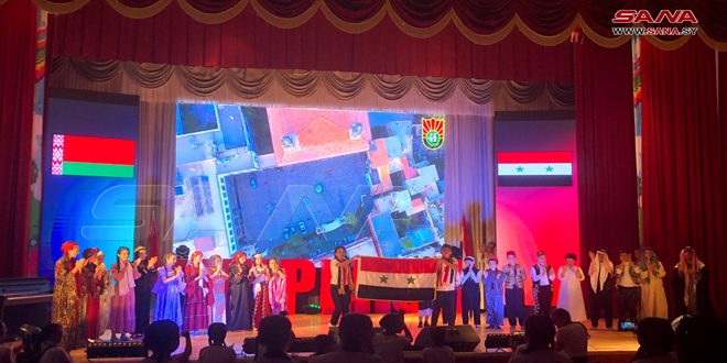 وقدم الأطفال السوريون خلال الأمسية التي جرت بحضور السفير السوري في مينسك محمد العمراني عدداً من اللوحات الوطنية والتقليدية السورية التي تعبر عن تاريخ سورية وحضارتها، حيث نالت إعجاب واستحسان الحضور.
