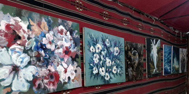 وبين الفنان سهيل أبو حمدان رئيس فرع دمشق لاتحاد الفنانين التشكيليين أن اللوحات اقتصرت على الزهور لأنها من أهم مقومات جمال البيئة السورية والشامية.