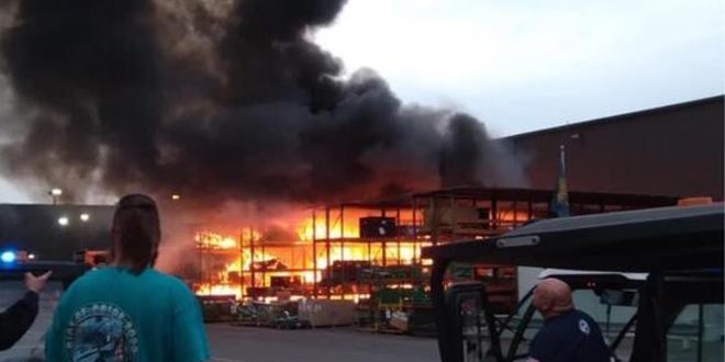 اندلع حريق هائل داخل منشأة تصنيع في منطقة كليفلاند الواقعة بمقاطعة روان في ولاية نورث كارولينا الأمريكية، وأسفر عن تدمير المنشأة.
