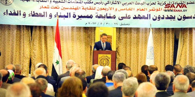وتحدثت عضو القيادة المركزية لحزب البعث العربي الاشتراكي رئيسة مكتب النقابات الشعبية والمنظمات المهنية المهندسة هدى الحمصي عن دور نقابة المهندسين في تطوير وتنظيم المهنة والارتقاء بالعمل ومواكبة التطور، منوهة بجهود المهندسين السوريين خلال سنوات الحرب الإرهابية وكارثة الزلزال عبر تقديم الدعم اللازم لتخفيف آثار الدمار الذي لحق بالمنشآت في ظل الحصار الاقتصادي المفروض على بلدهم.