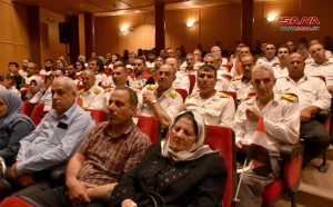 حضر الحفل محافظ حماة الدكتور محمود زنبوعة، وأمين فرع حماة لحزب البعث العربي الاشتراكي المهندس أشرف باشوري.