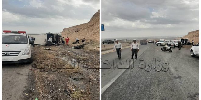 توفي شخص وأصيب 15 آخرون بجروح، جراء حادث تدهور بولمان على أوتوستراد دمشق حمص.