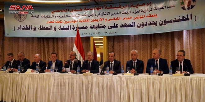 وخلال حضوره المؤتمر العام الخامس والأربعين لنقابة المهندسين اليوم، نقل المهندس عرنوس محبة السيد الرئيس بشار الأسد لأعضاء المؤتمر ولكل مهندس على ساحة الوطن آمن ببلده ودافع عنه وعمل كل ما يستطيع لبنائه.