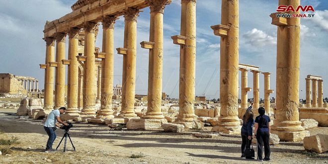 أنهت قناة الصين الرسمية اليوم تصوير فيلم وثائقي عن المعالم الأثرية والسياحية في مدينة تدمر، تم خلاله توثيق الدمار الذي لحق بالمواقع التاريخية جراء اعتداءات تنظيم “داعش” الإرهابي.