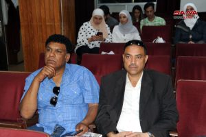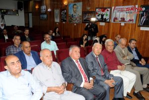 حضر المحاضرة مدير عام مؤسسة القدس الدولية_سورية الدكتور خلف المفتاح ورئيس اللجنة الشعبية العربية السورية لدعم الشعب الفلسطيني ومقاومة المشروع الصهيوني الدكتور صابر فلحوط وعدد من قادة وممثلي الفصائل الفلسطينية والأحزاب الوطنية السورية والفلسطينية، ونخبة من الباحثين والمهتمين.