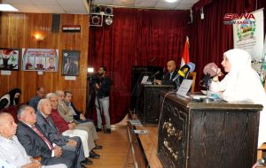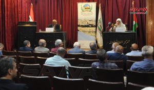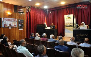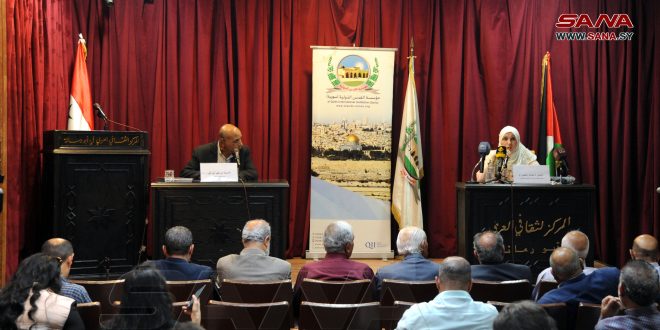 أقامت مؤسسة القدس الدولية سورية و اللجنة الشعبية العربية السورية لدعم الشعب الفلسطيني و مقاومة المشروع الصهيوني والفصائل الفلسطينية المقاومة اليوم محاضرة بعنوان التراث وأهميته في التصدي للمشروع الصهيوني التهويدي، وذلك في المركز الثقافي العربي بأبو رمانة بدمشق.