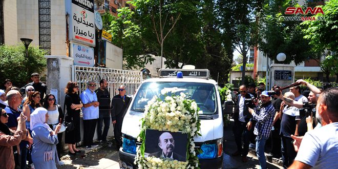 وشيع الراحل الذي غيبه الموت فجر الإثنين الماضي عن عمر ناهز 81 عاماً من مشفى دار الشفاء بدمشق، ليصلى على جثمانه في مقام السيدة زينب، وليوارى الثرى في مقبرة الشهداء مقابل المقام.