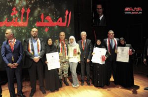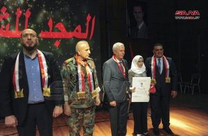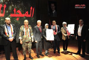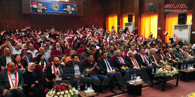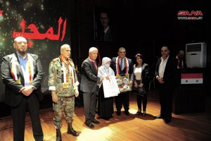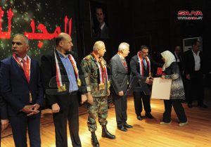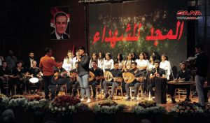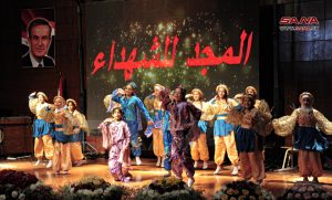 وتخللت الاحتفالية لوحات راقصة وأغان ومقاطع شعرية عبرت عن المعاني السامية للشهادة، قدمها طلاب من اتحاد شبيبة الثورة وتلاميذ من منظمة طلائع البعث.